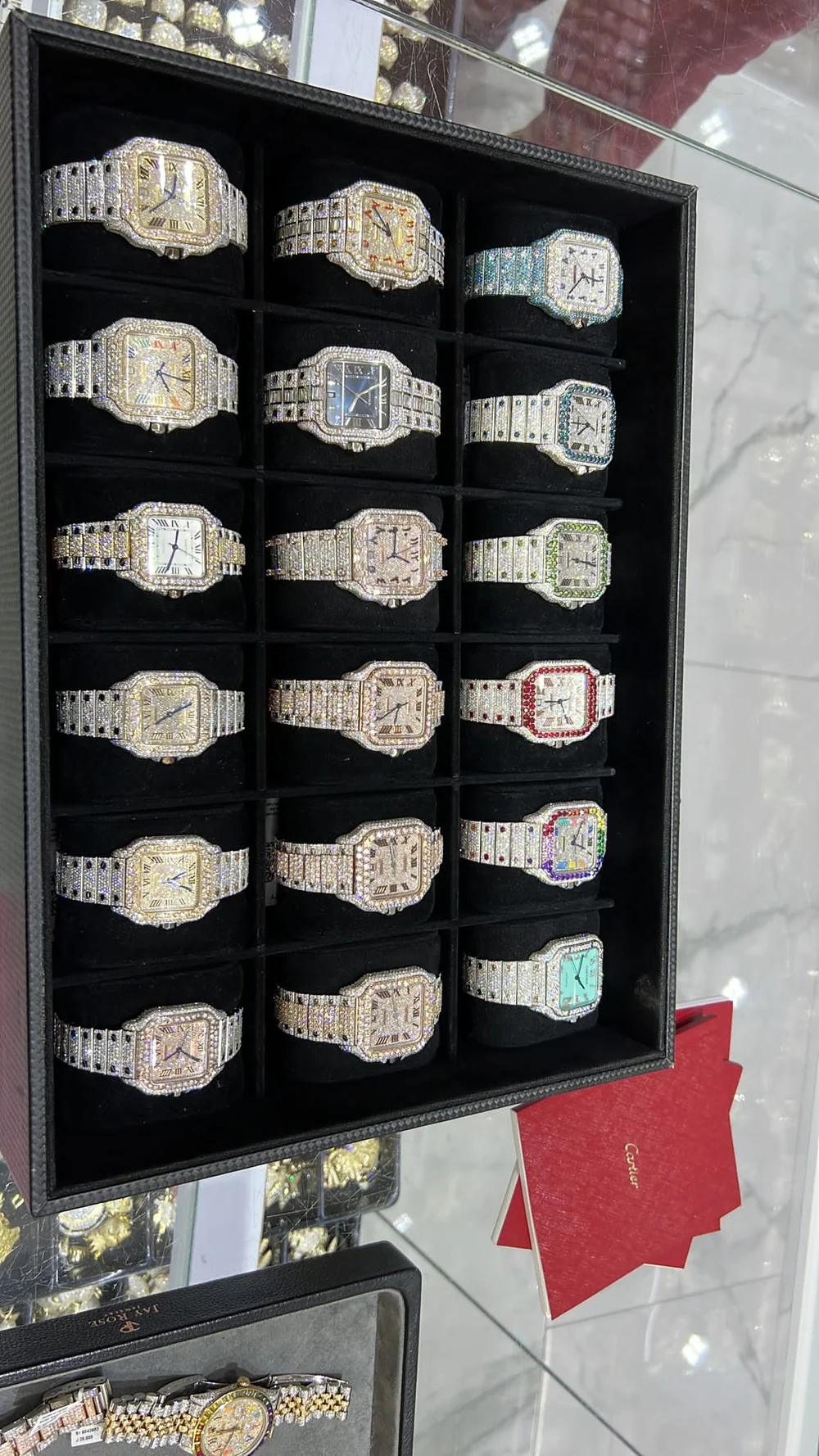 The Iced Out Cartier Rainbow Watch is the ultimate luxury statement piece, combining iconic Cartier craftsmanship with bold rainbow brilliance. This brand-new, fully iced-out Cartier watch features 18 carats of hand-set diamonds and rainbow stones, delivering unmatched shine, color, and prestige. Designed for collectors and trendsetters alike, this watch commands attention from every angle.